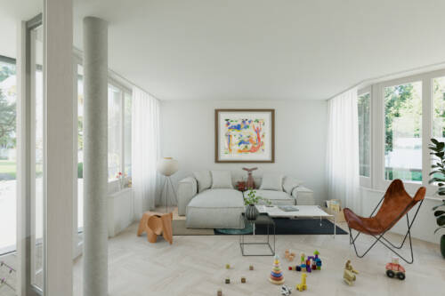 Für die gewünschte Privatsphäre sorgen vorgelagerte Loggien sowie Brüstungsfenster. Eine sorgfältig ausgewählte und hochwertige Materialisierung verleiht den Wohnungen zurückhaltende Eleganz. Gepaart mit architektonischen Details entsteht ein Ort des Wohlfühlens.
